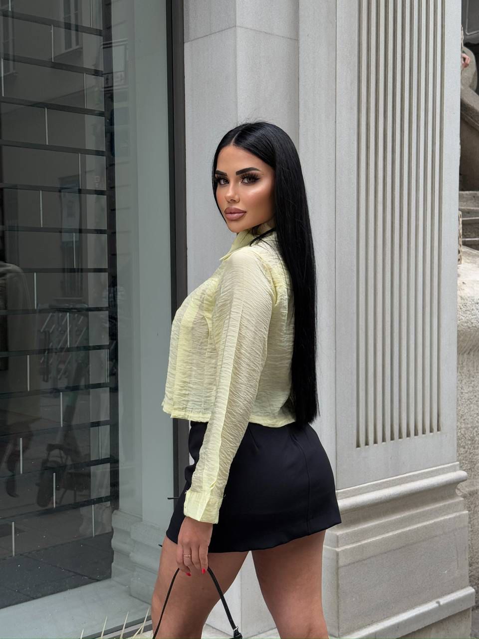 Soft greenish yellow shirt, crafted from a comfortable cotton blend.
