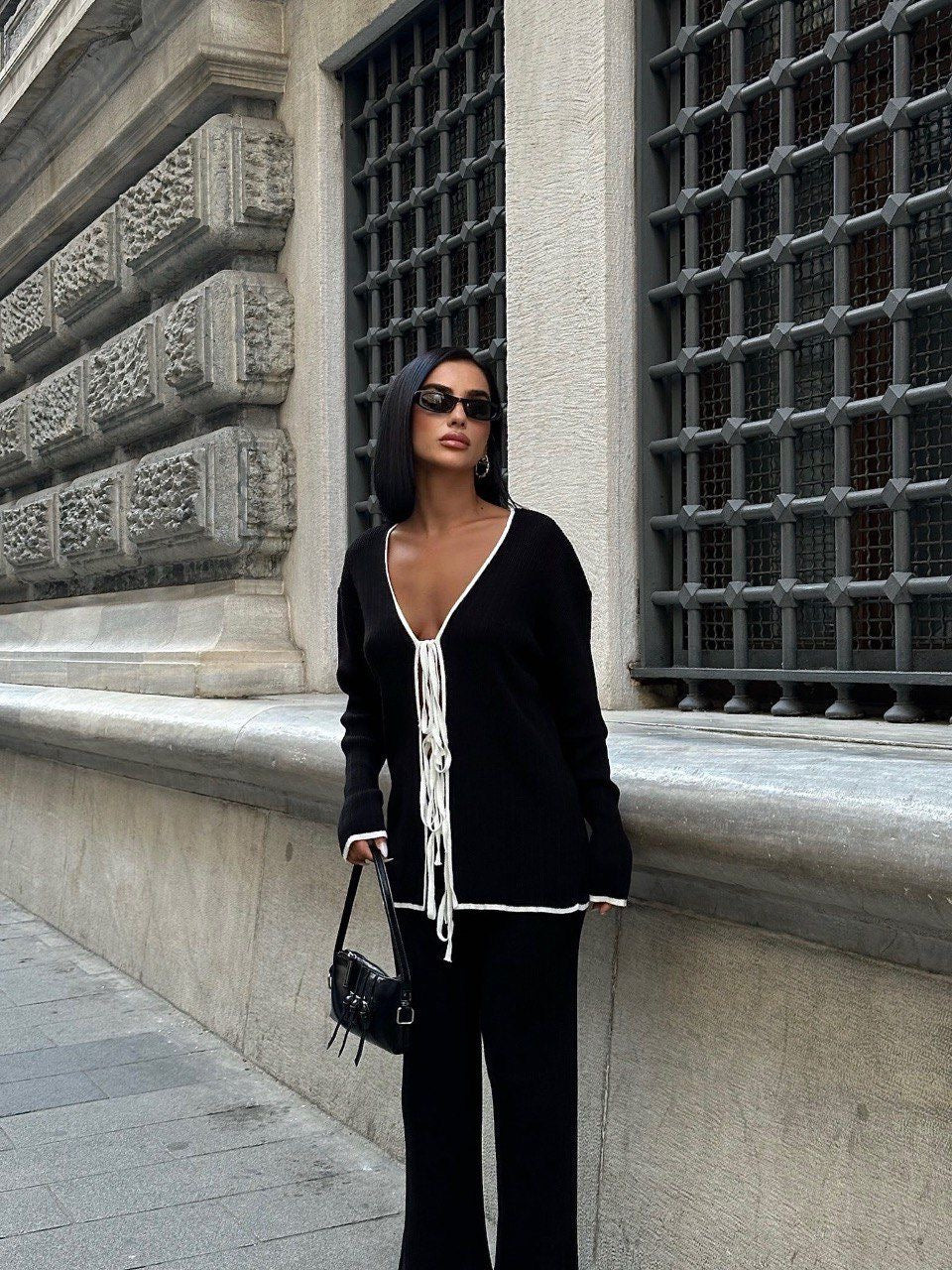 A soft-knit duo finished with delicate bow ties for timeless femininity.