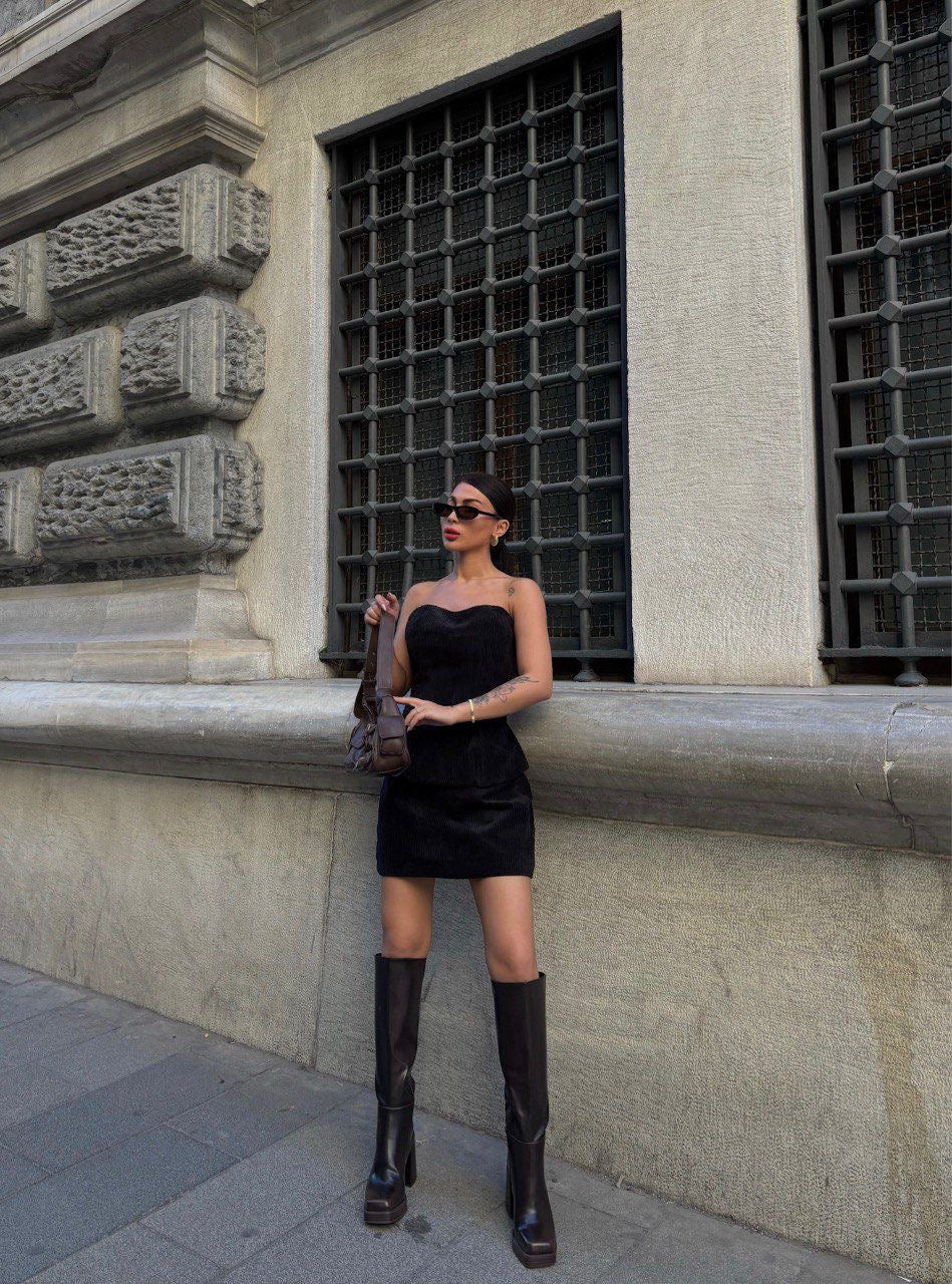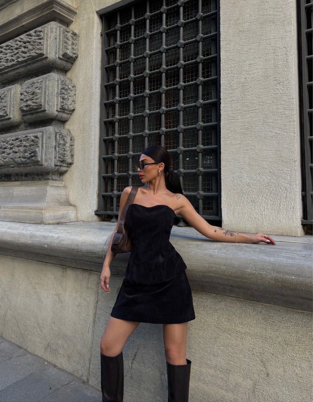 Chic velvet skirt that shapes your silhouette, can be styled alone or paired with a top.