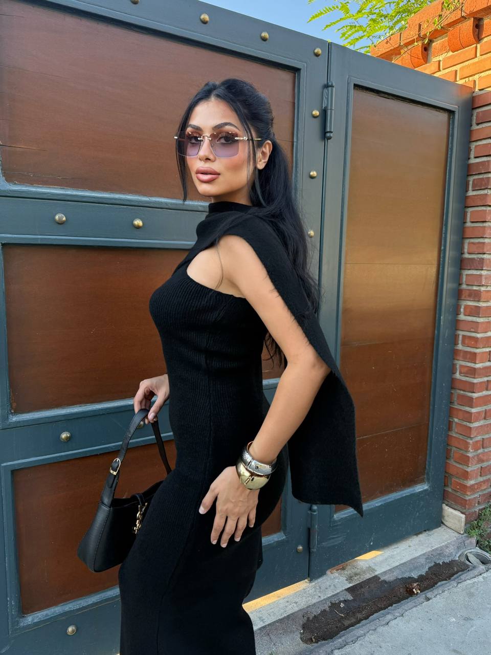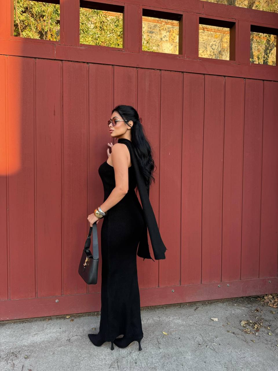 Statement one-shoulder winter dress with it’s matching chic shawl.