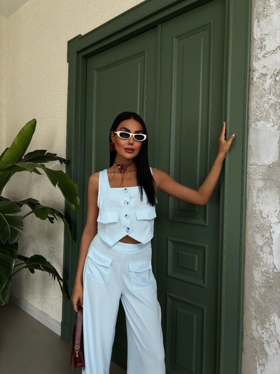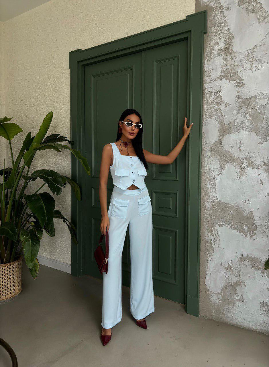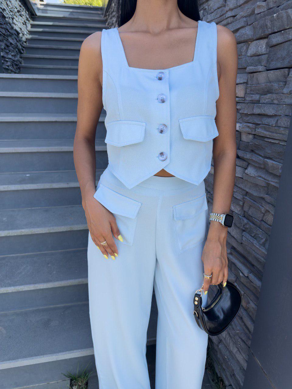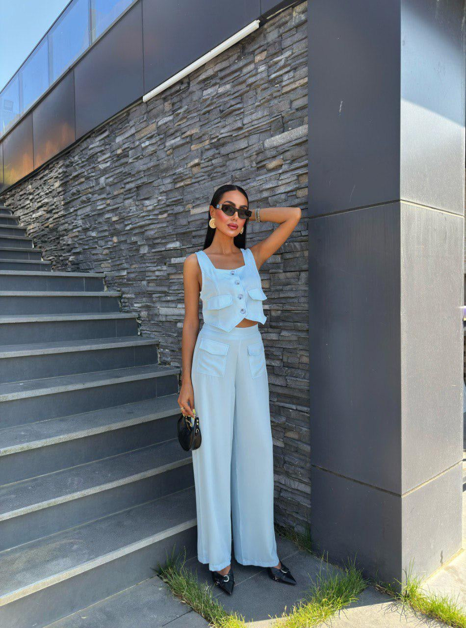 Blueish white set with endless styling potential. Can be your go-to for office days, brunch dates, or chic nights out.