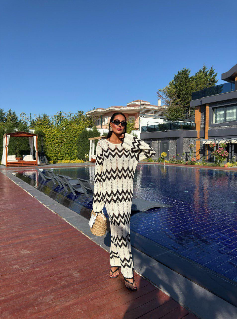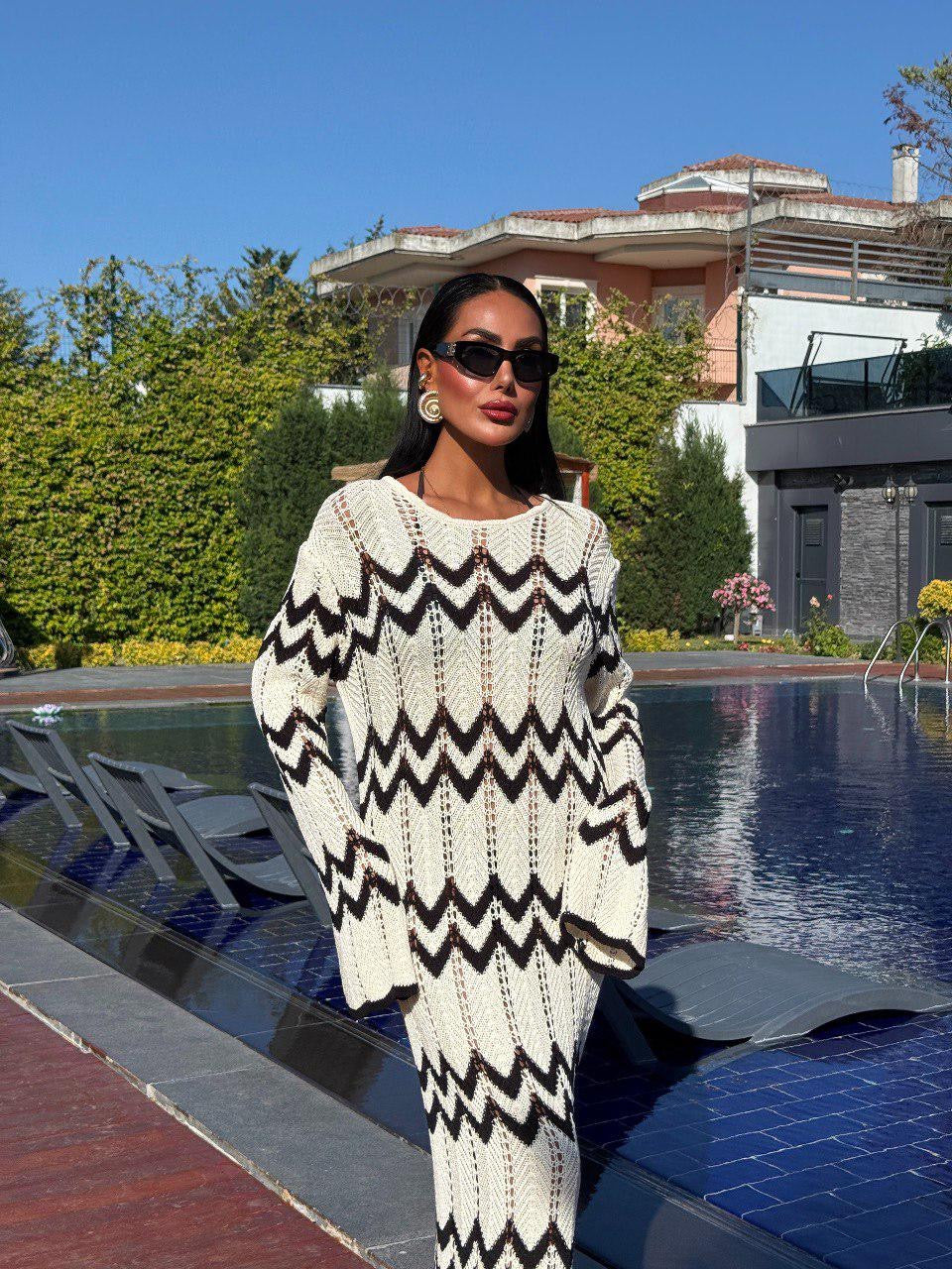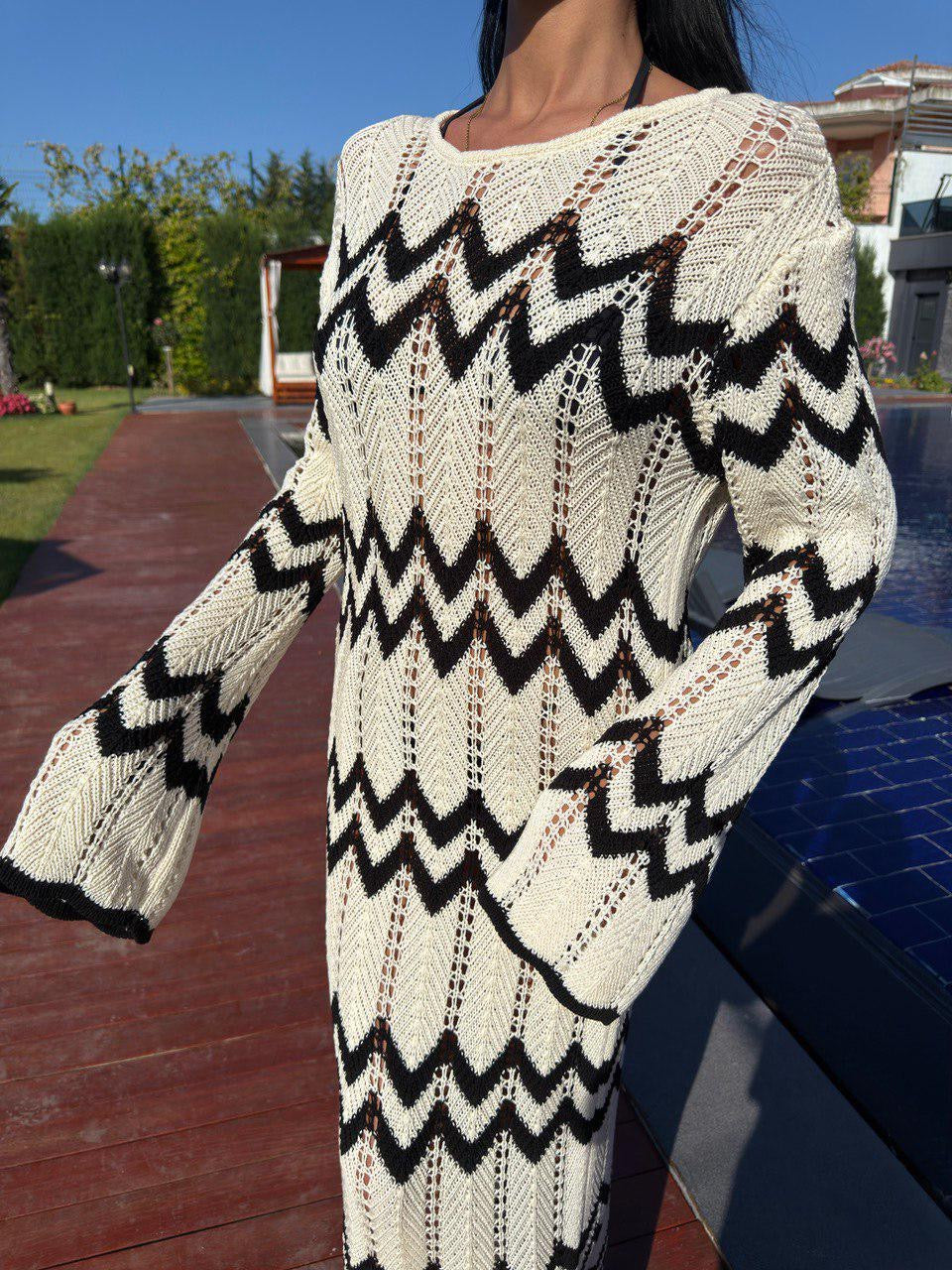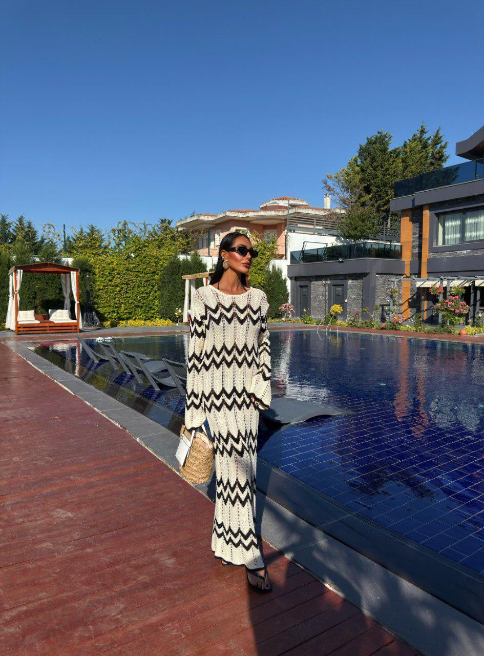 Maxi coverup with a bold zigzag pattern, perfect for sunny days & beach strolls